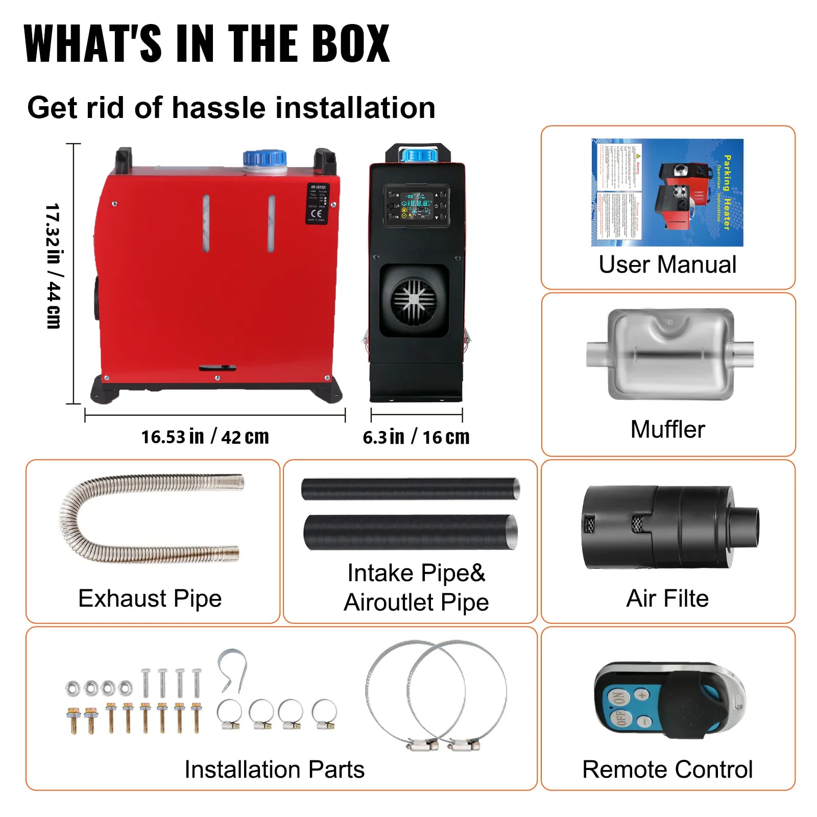 Diesel Parking Heater 12V Diesel Air Heater 8000W Diesel Parking Heater with Muffler for Cars Buses Trucks Engineering Veh